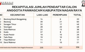 Nagan Raya – Panwaslih Kabupaten Nagan Raya melalui kelompok kerja pembentukan Panwaslu Kecamatan untuk Pemilu Tahun 2024 telah membuka pendaftaran dan penerimaan berkas calon anggota Panwaslu Kecamatan yang dimulai pada 21 s.d 27 September 2022, kemudian guna memberikan keadilan afirmasi bagi
