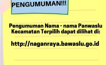 Nagan Raya_Panwaslih Kabupaten Nagan Raya mengumumkan nama - nama Panwaslu Kecamatan terpilih setelah melakukan rapat pleno penetapan nama - nama yang terpilih pada 24/10 pukul 17.15 wib bertempat di Sekretariat Panwaslih Kabupaten Nagan Raya.